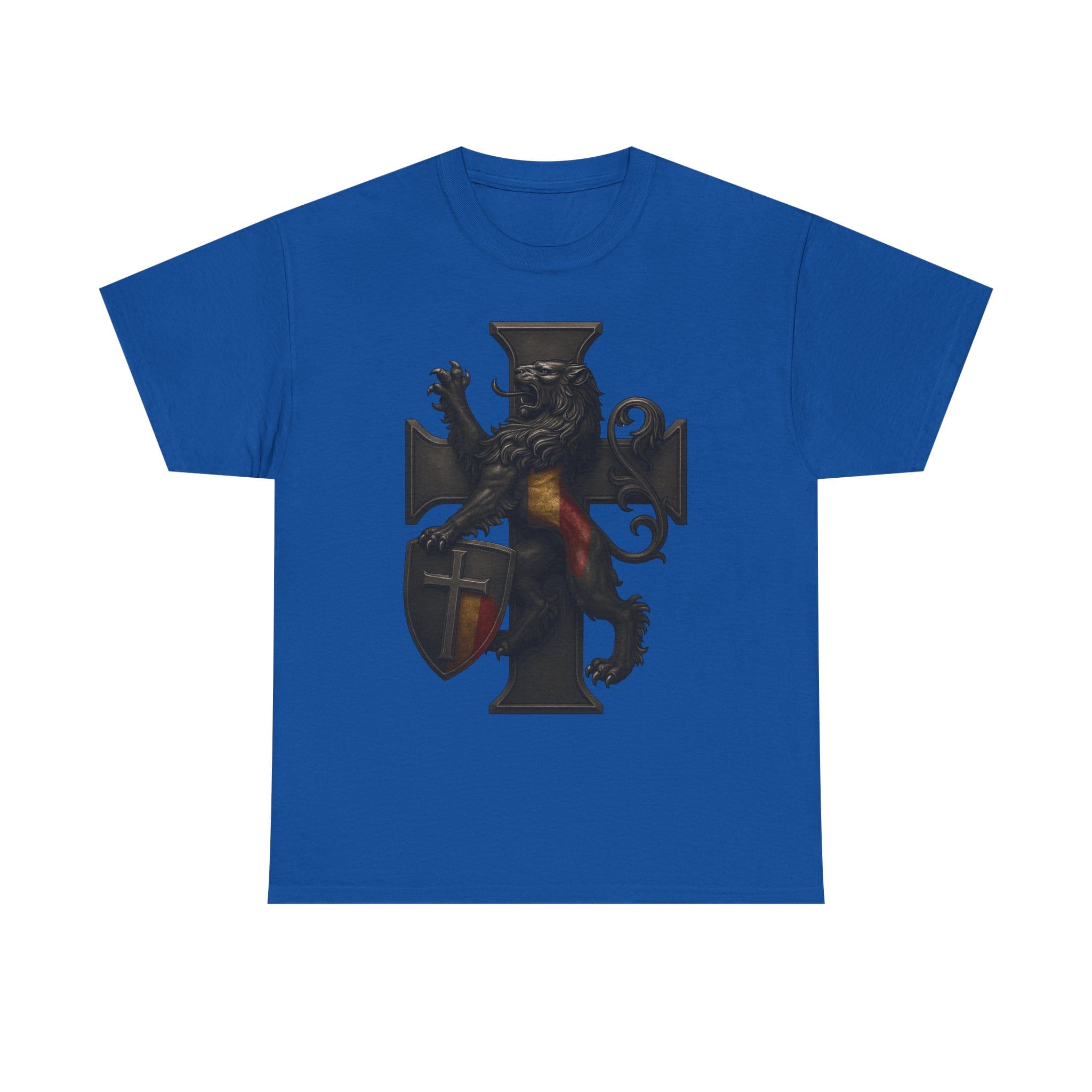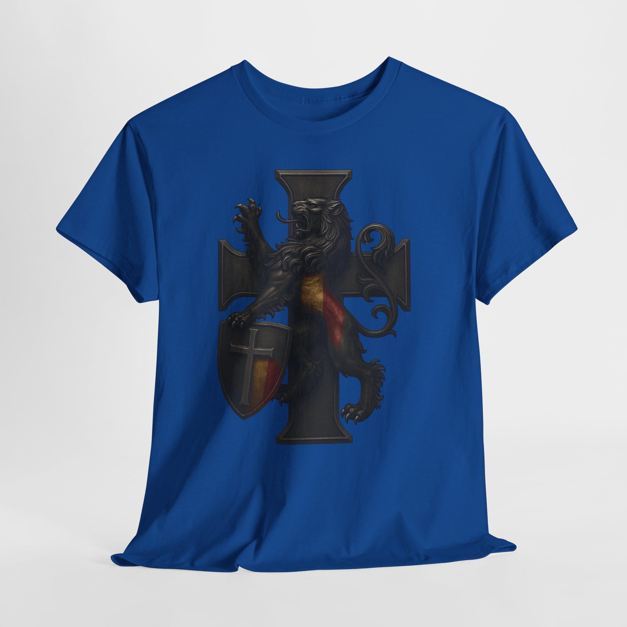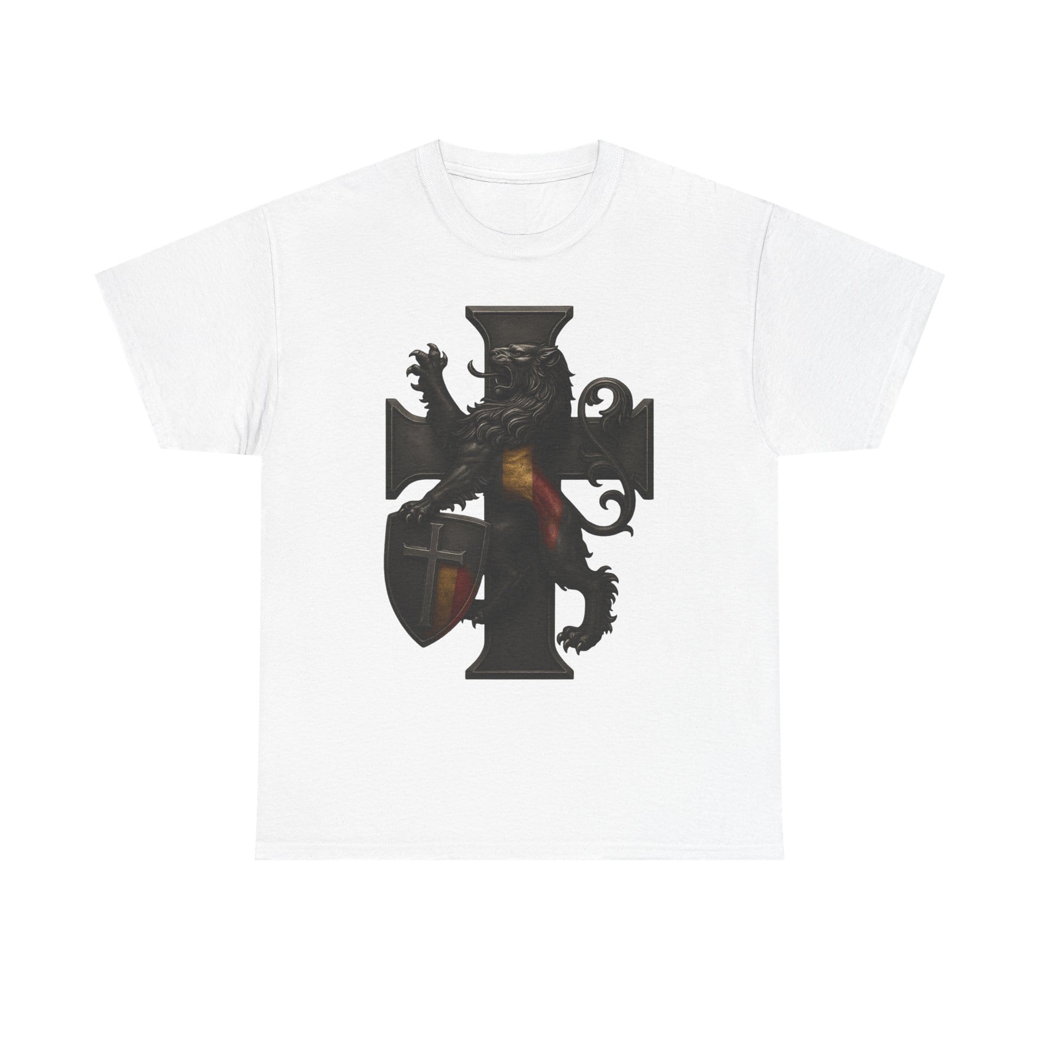 Wearing this shirt brings a sense of grounded identity into your daily life. It encourages you to live deliberately—organizing your world, strengthening your bonds, and cultivating the habits that support a stable and meaningful home. Let the lion’s steadfast stance and the structured cross inspire you to bring order to your routines and dignity to your decisions. This garment is not about the past alone; it’s about renewing tradition through the choices you make today.
