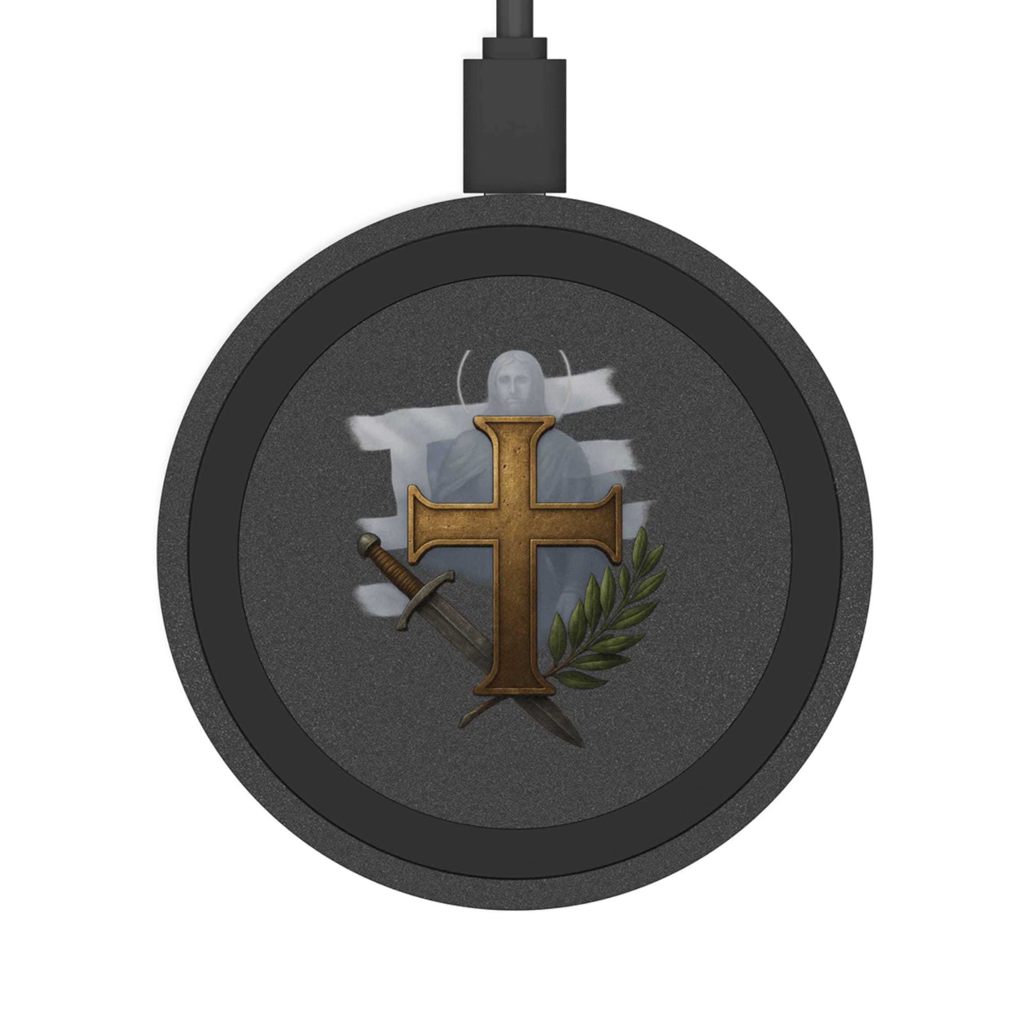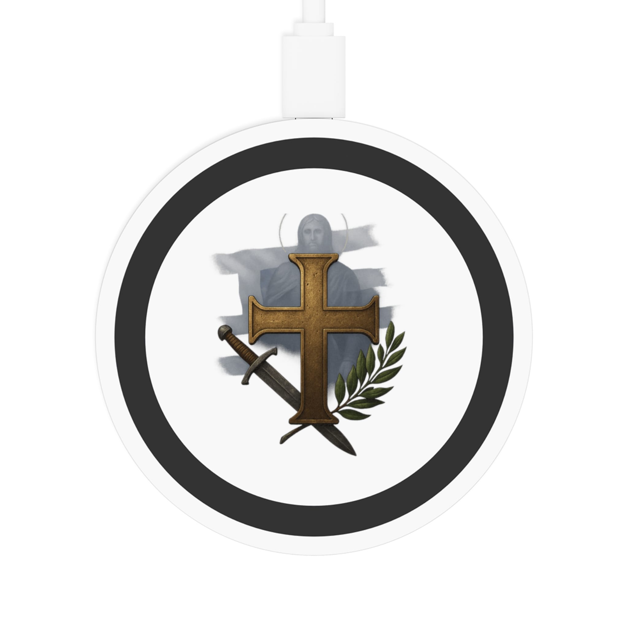 Centered upon the Cross and flanked by the olive branch of peace and the sword of duty, this charging pad speaks to the harmony of the Hellenic Christian tradition: courage guided by compassion, strength anchored in faith. Christ’s serene silhouette adds a layer of quiet reassurance.