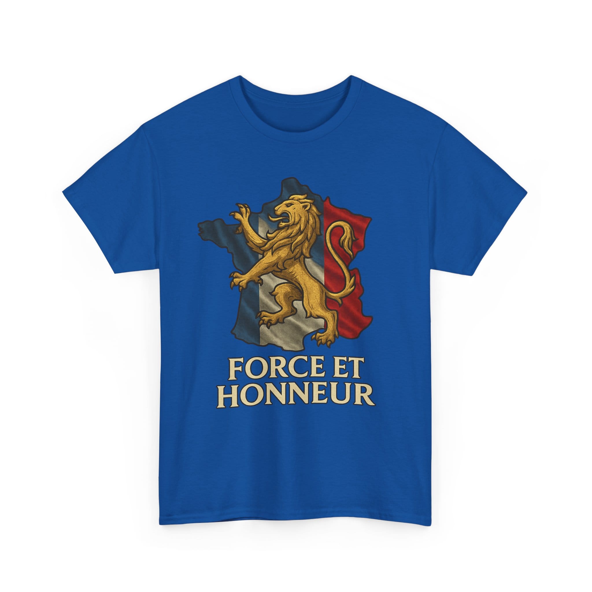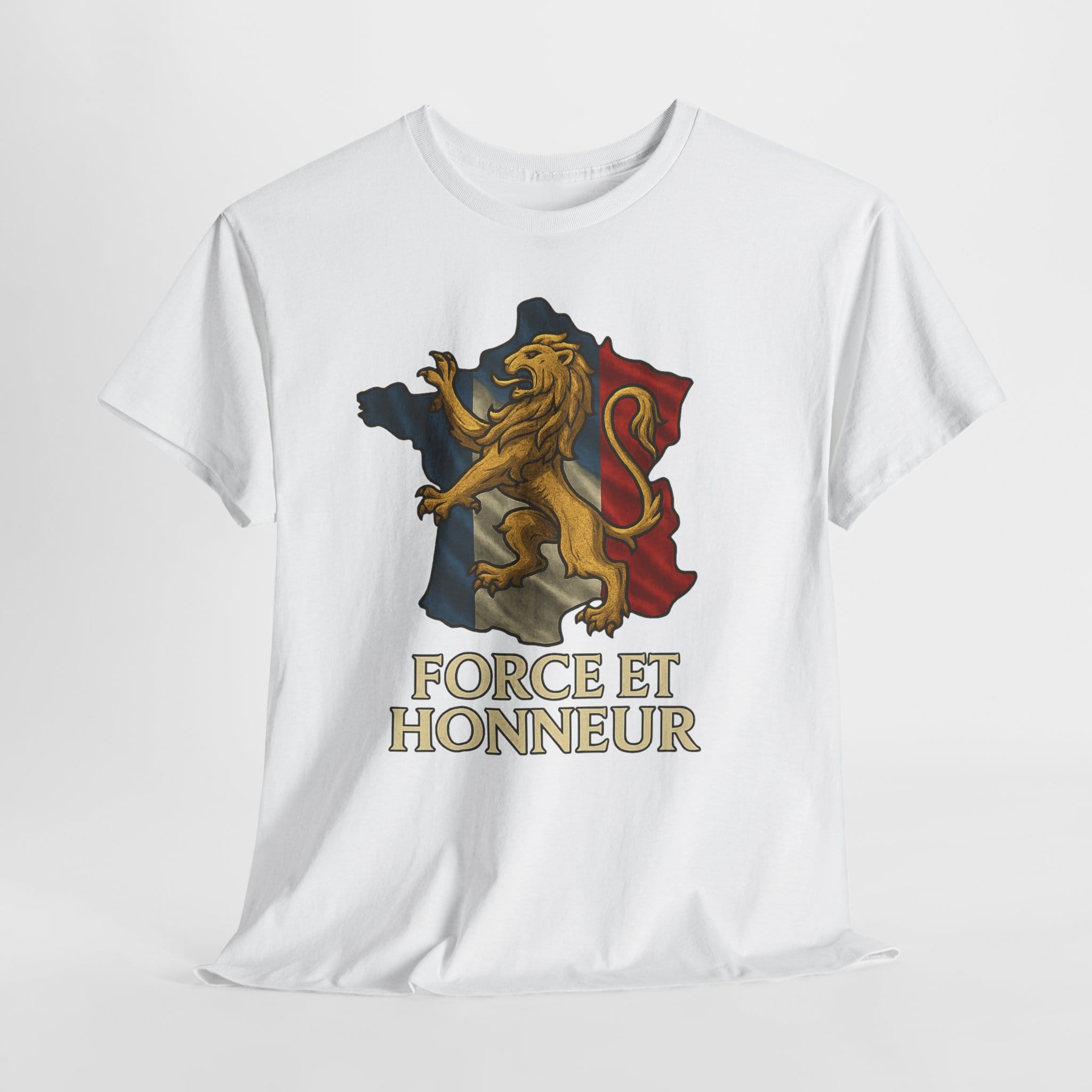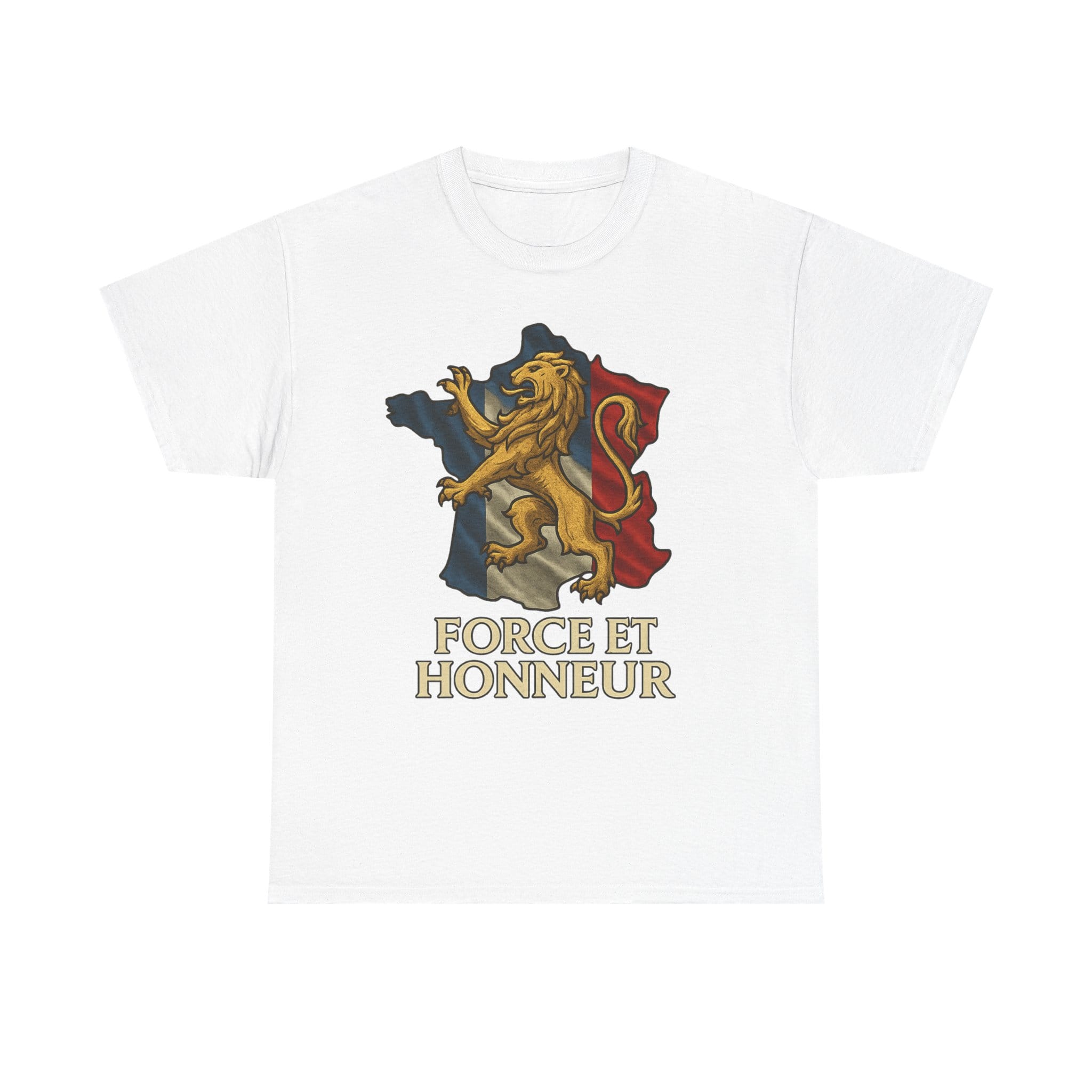 This shirt pays tribute to the eternal virtues that shaped France—strength, honor, and unyielding duty. The proud Gallic lion, draped over the map of France in the tricolour, stands as a reminder that a nation survives only when its people refuse to bow. Wearing this design is an act of loyalty to the legacy of Clovis, Charlemagne, and all those who built France through courage and sacrifice.