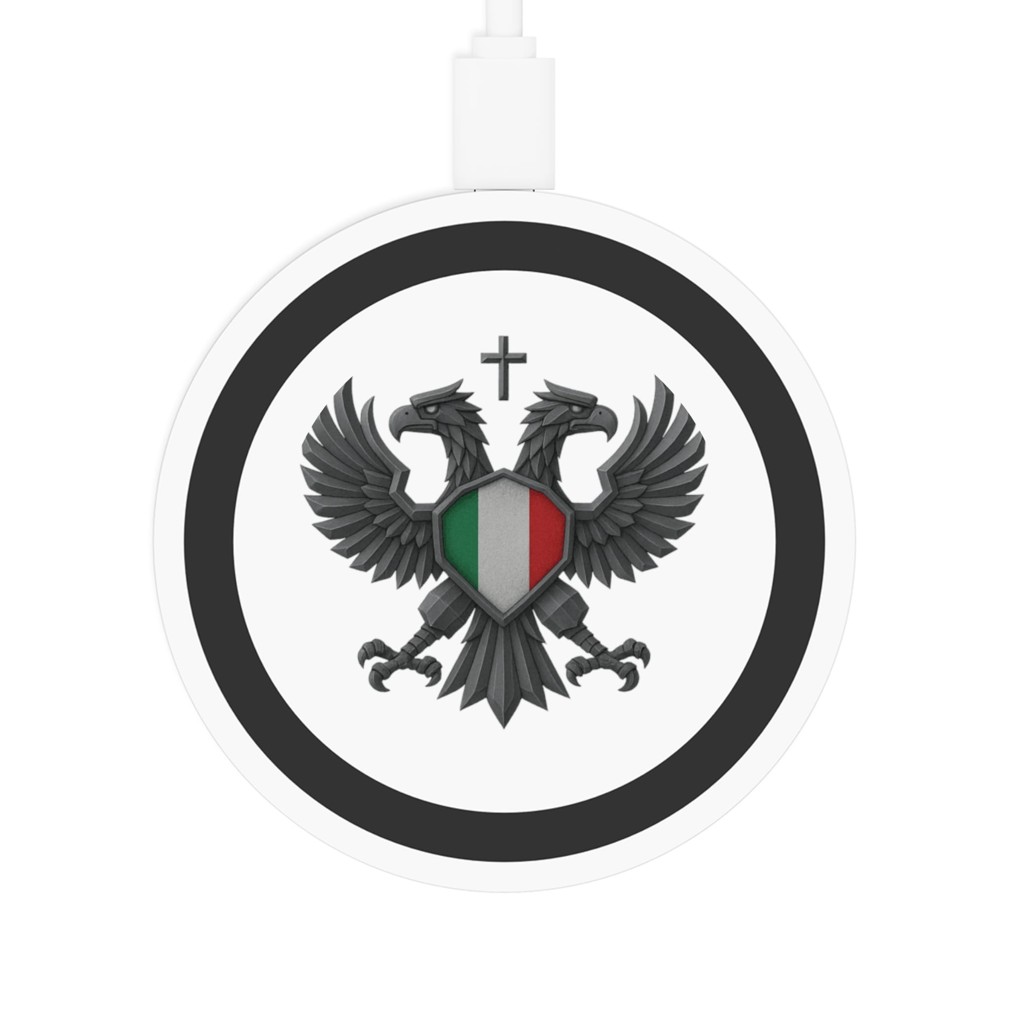 This charging pad blends modern technology with a classical symbol of permanence: the double-headed eagle dignified with the Italian tricolore. It represents continuity — the idea that identity is shaped not by passing trends but by centuries of culture, artistry, and shared memory. On your desk or bedside table, it invites you to approach daily routines with intention rather than haste.