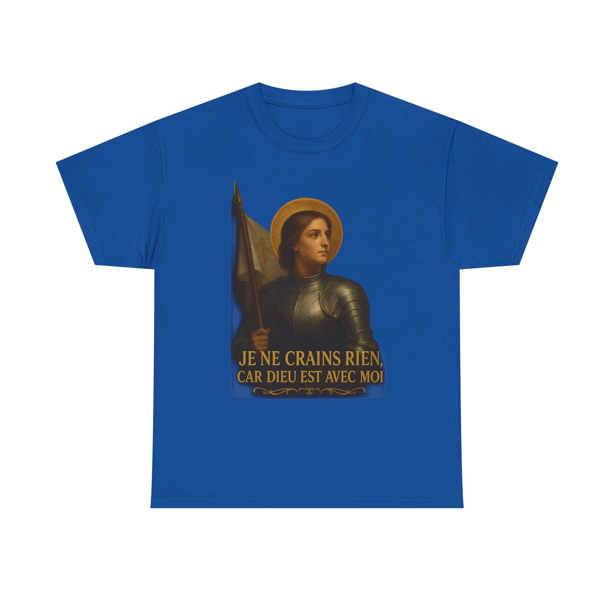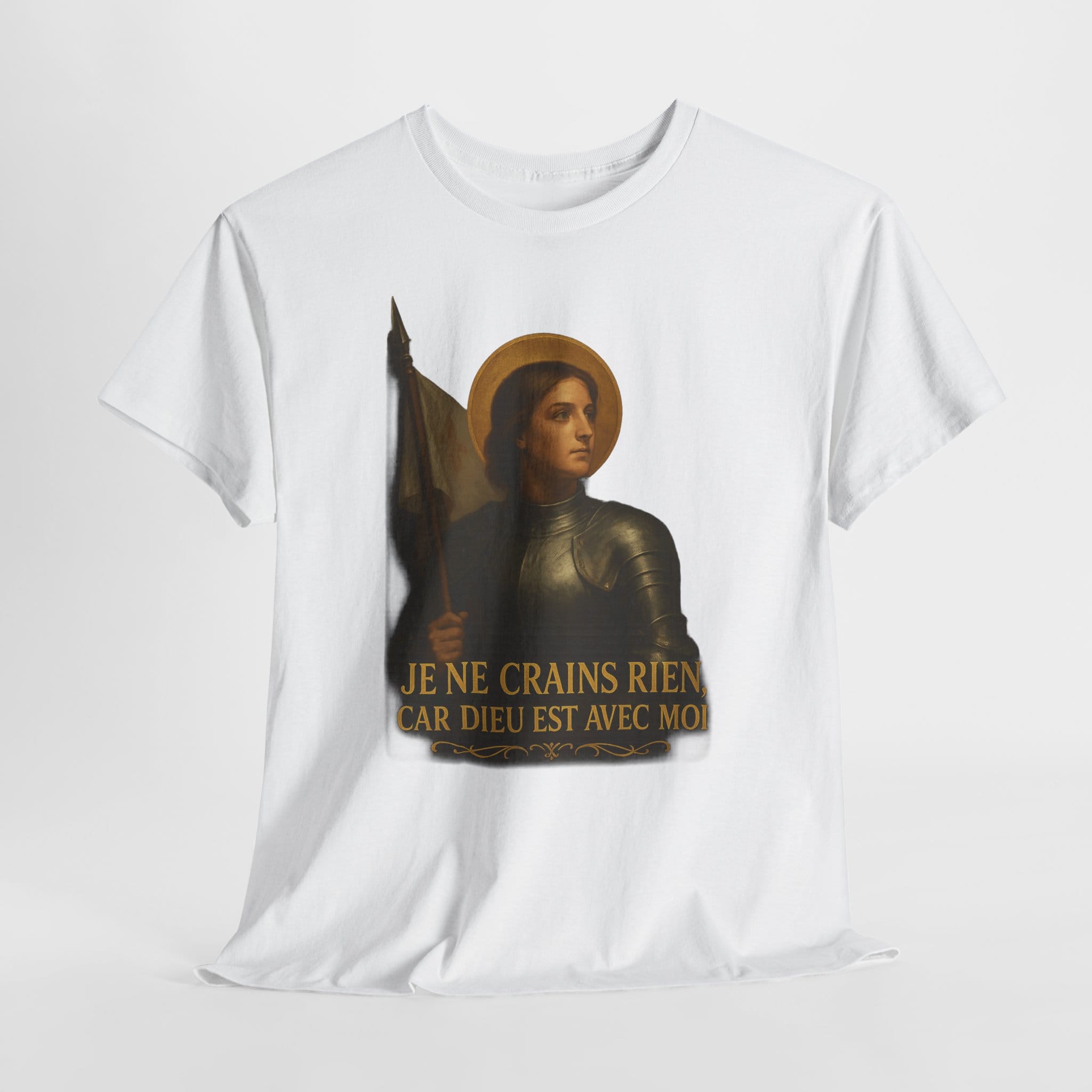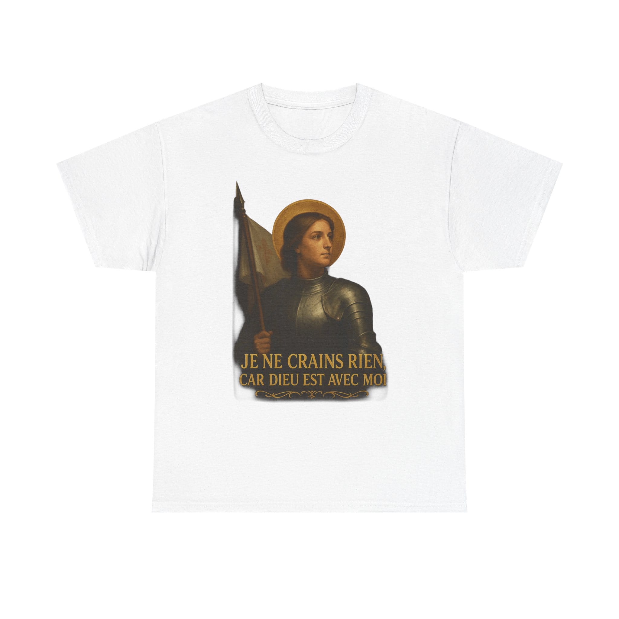 Joan of Arc embodies everything noble about the French soul: courage, purity, faith, and patriotic fire. With serene resolve and divine purpose, she stood unafraid before armies and kings. This shirt celebrates her immortal words—I fear nothing, for God is with me—a rallying cry for all who still believe France has a sacred destiny.