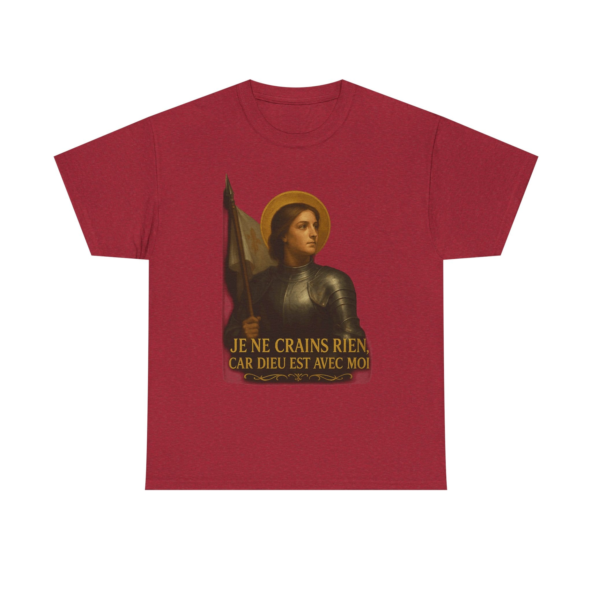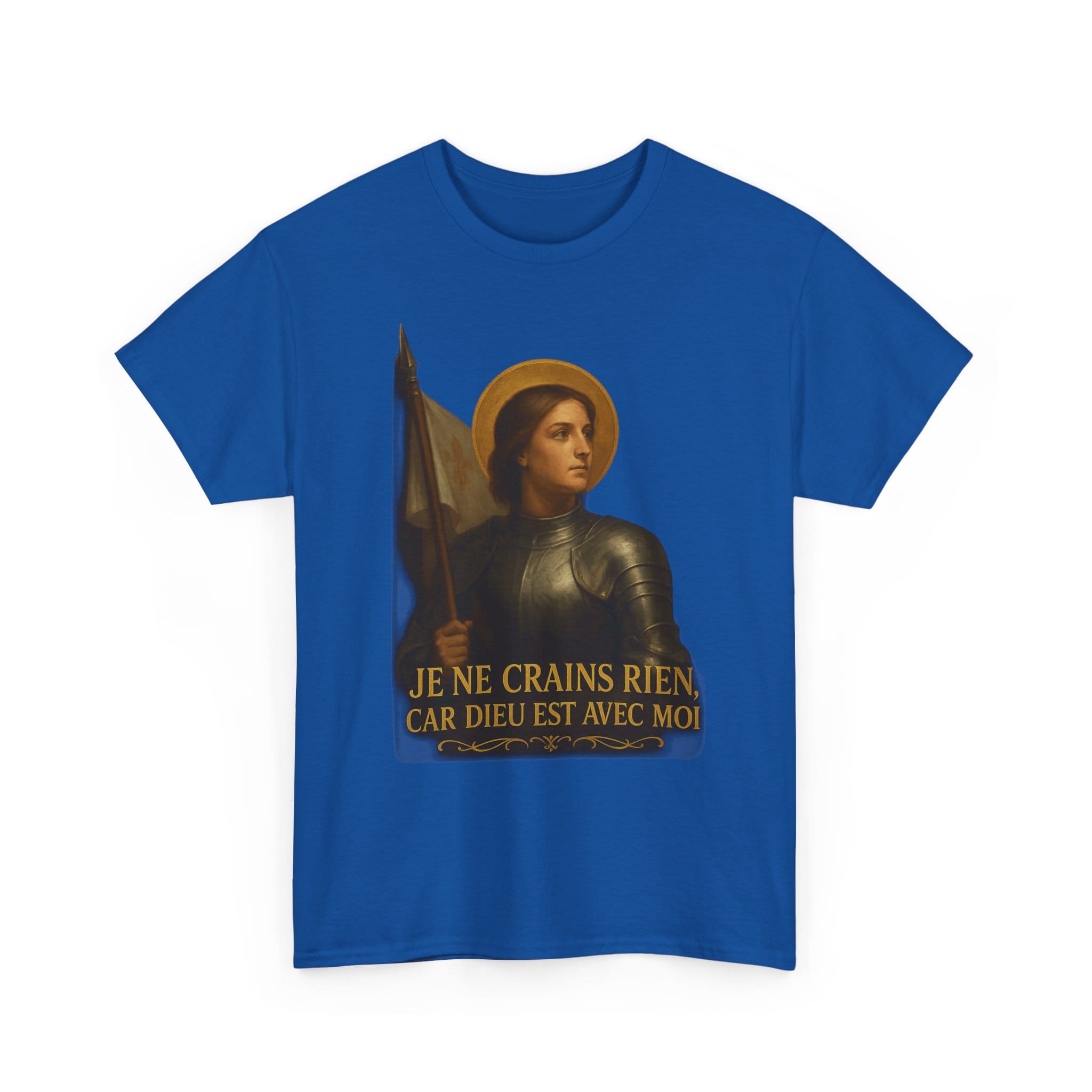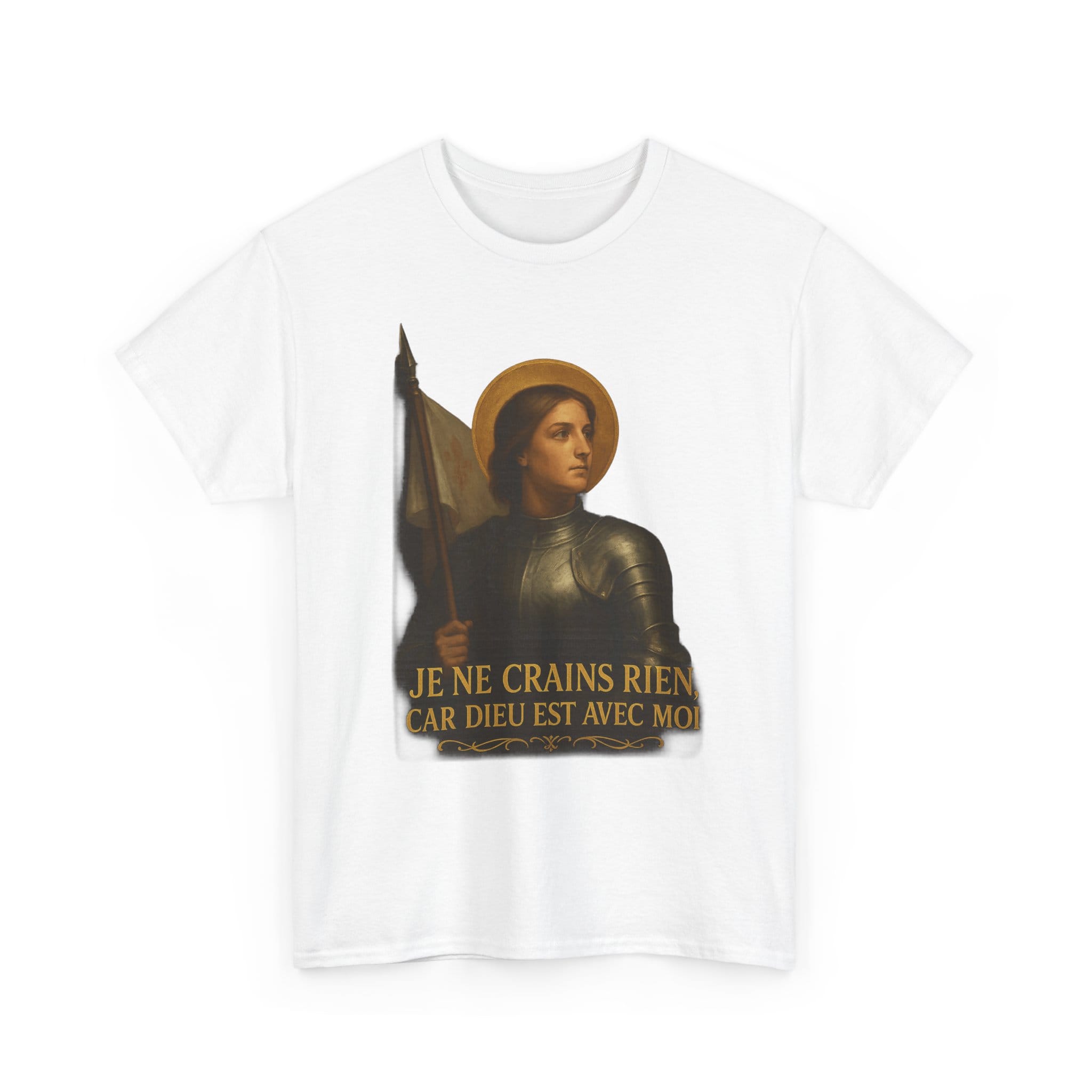 Joan of Arc embodies everything noble about the French soul: courage, purity, faith, and patriotic fire. With serene resolve and divine purpose, she stood unafraid before armies and kings. This shirt celebrates her immortal words—I fear nothing, for God is with me—a rallying cry for all who still believe France has a sacred destiny.